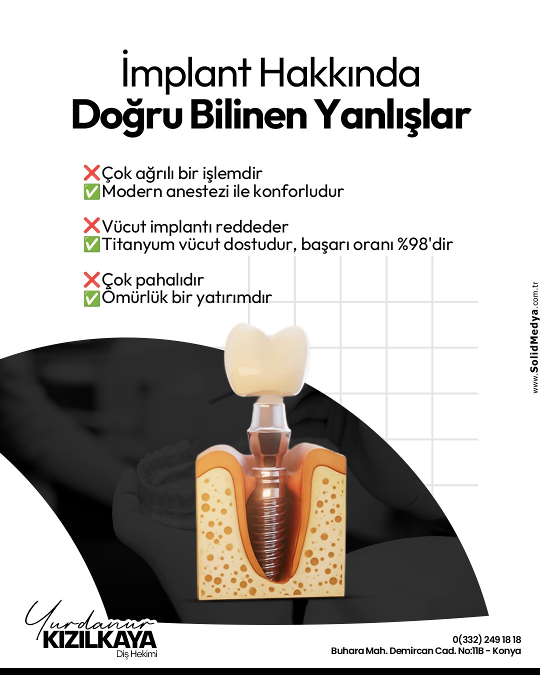 Kliniğimizde implant tedavisi, estetik diş hekimliği, gülüş tasarımı ve genel diş tedavileri, güncel teknoloji ve hijyen standartlarına uygun şekilde uygulanmaktadır. Amacımız, her hastamıza sağlıklı, doğal ve estetik bir gülüş kazandırırken konforlu ve güvenilir bir tedavi süreci sunmaktır.
